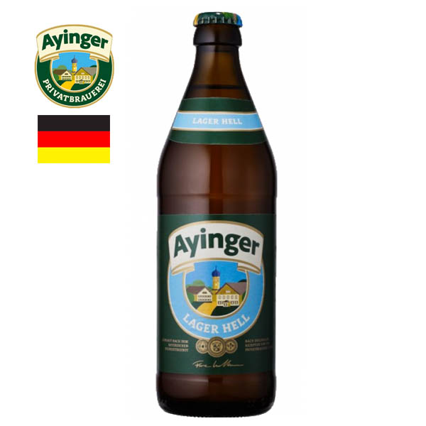 Más info: Ayinger Lager Hell es la típica cerveza de consumo diario en Baviera. Junto con la cerveza de trigo, este estilo Munich Helles es el más famoso del sur de Baviera. Nuestro clásico con receta refinada se caracteriza por un hermoso tono dorado claro. El equilibrio entre la malta ligera y un toque de lúpulo, la convierte en una experiencia única y de gran tomabilidad. Una cerveza con cuerpo, fresca y sabrosa!